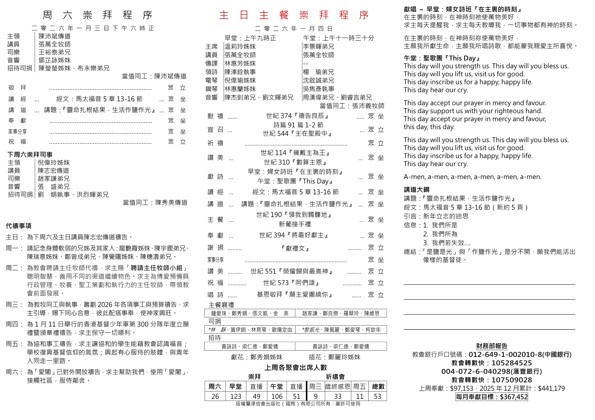 2026年1月4日主日主餐 (早午)堂崇拜程序表