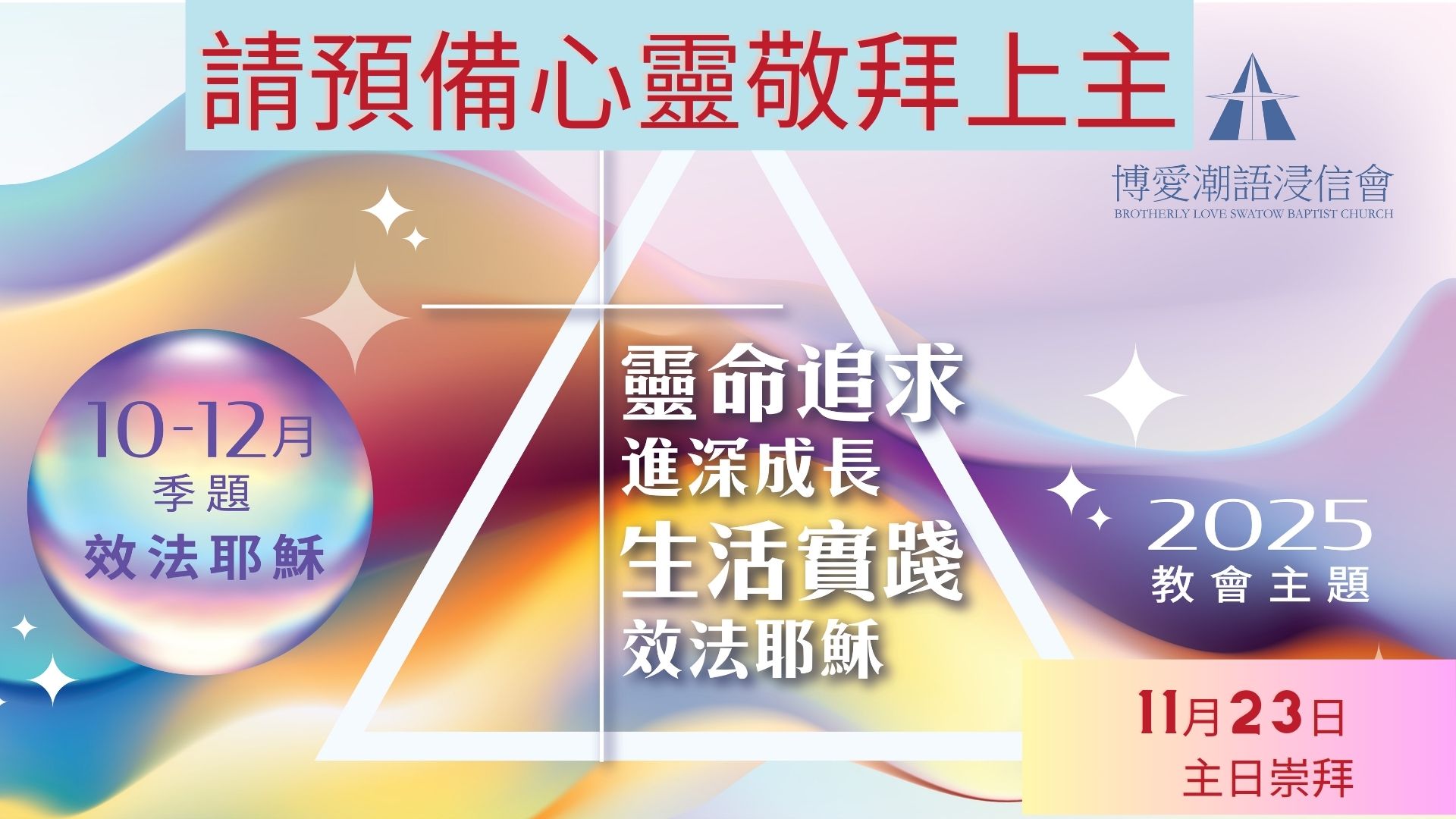 | 司捐及招待: | 盧成昌執事 布永樂弟兄 |